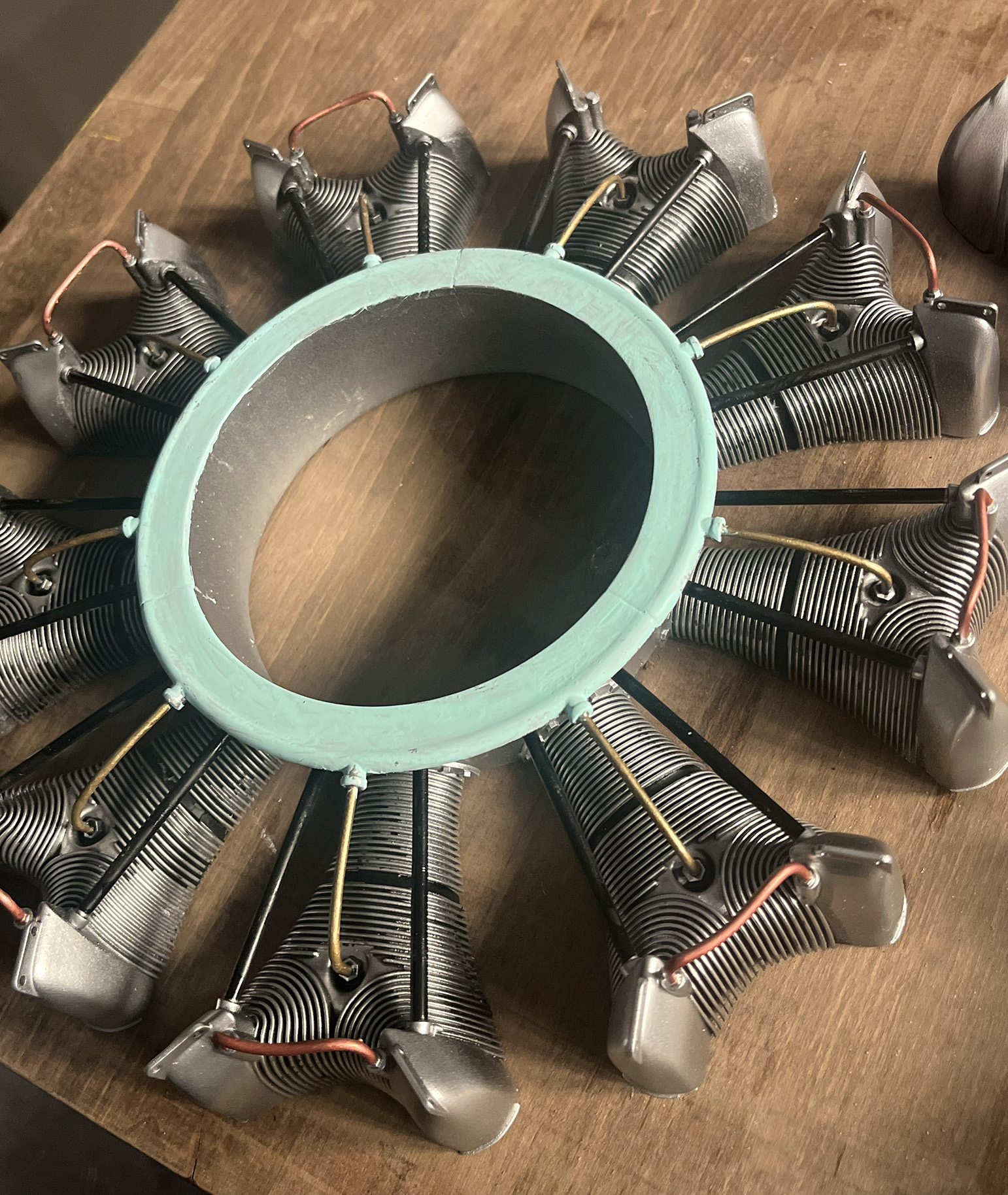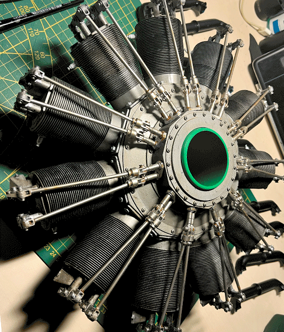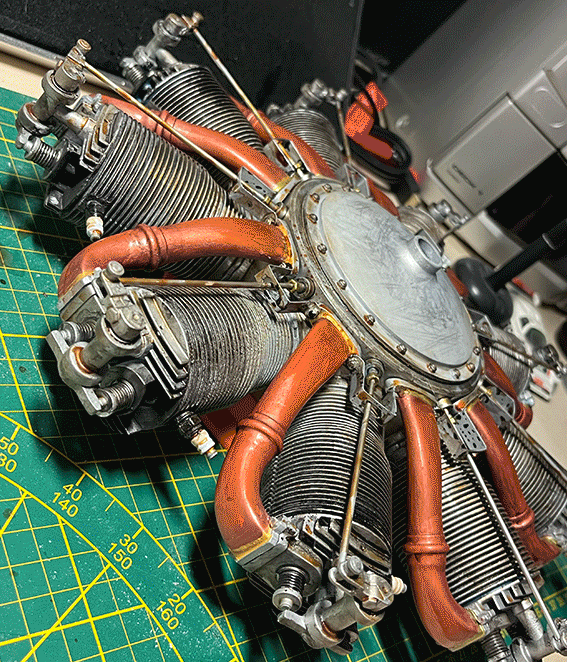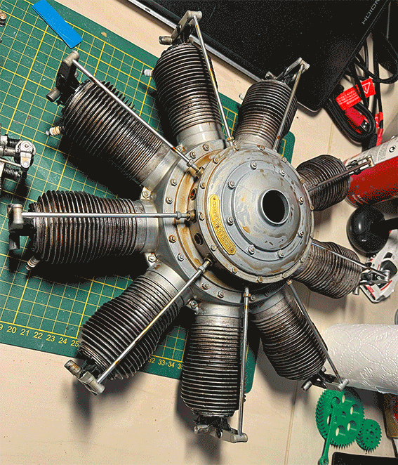 Makieta silnika Le Rhone 9C w skali 1:3. Modelowanie, druk 3d i malowanie.