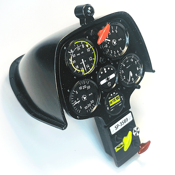 Makieta kabiny szybowca PW-5 – kokpit, pilot i tablica przyrządów. Modelowanie, druk 3d, przygotowanie kalkomanii i malowanie.